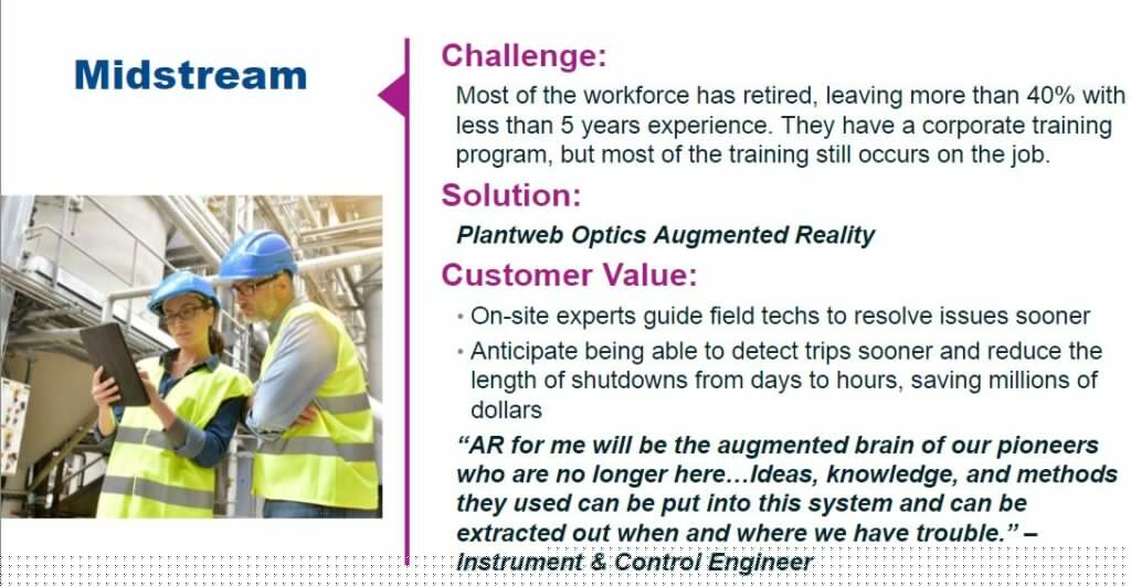 Finally, the engineers shared two success stories about AR as an operational solution. One of them was a midstream company, with half of its senior technicians retired. The challenge was to train younger operators who had less than 5 years of experience. AR served them to accomplish that objective.