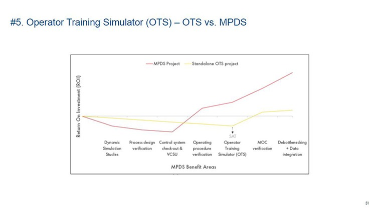 Serrano calculated the cost avoidance of all the operational team strategies at about $4-$8 million for each major unit of the assets. Implementing an MPDS model, while it’s more expensive at first, Serrano explained how the Return of Investment is much more effective than with stand-alone Operational Training Simulators.