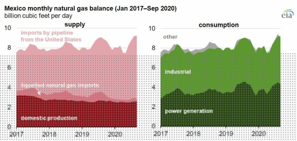 U.S. natural gas exports to Mexico have increased during the first nine months of 2020, the Energy Information Administration (EIA) informed today.