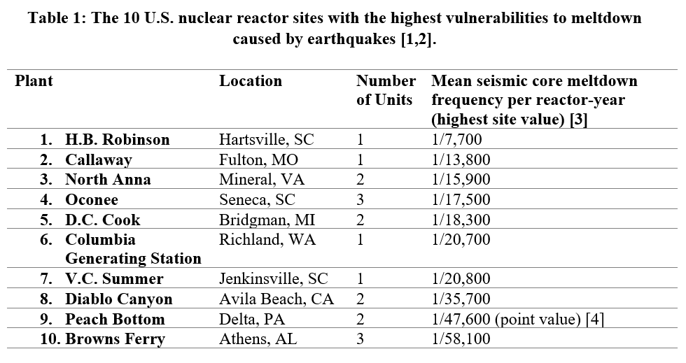 The report came today by the Union of Concerned Scientists (UCS), who calculated that the risk of meltdowns due to earthquakes is small, but the damage would be grave if they happen.
