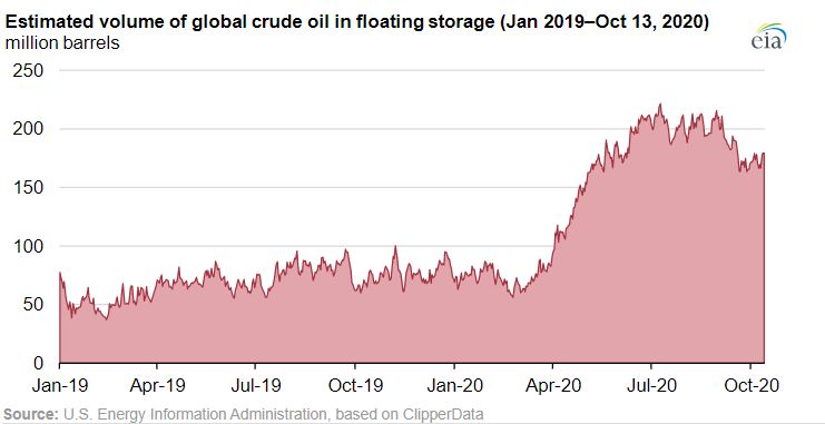 The estimation comes a week after the EIA published a detailed paper on oil tanker rates and how de demand for off-shore storage has increased and decreased so much during this year.